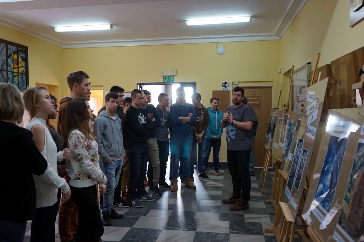 Uczestnicy warsztatów, ich koledzy i koleżanki oraz opiekunowie przybyli na spotkanie Pani Dyrektor ZST w Nysie mgr inż. Izabela Żukowska i Pani mgr inż. Ewa Szablewska nauczyciel przedmiotów budowlanych- mieli możliwość obejrzenia efektów pracy dzięki zorganizowanej z tej okazji wystawie.